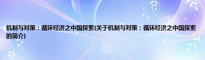 本文关于机制与对策:循环经济之中国探索的简介就讲解完毕,希望对大家有所帮助。