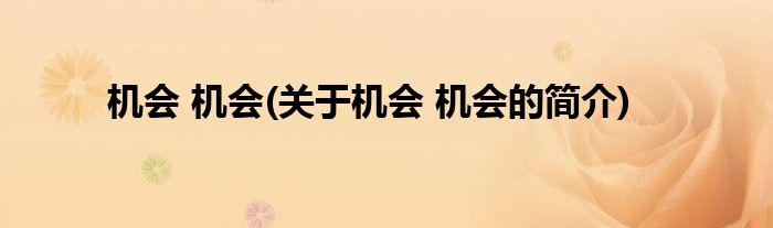 大家好,机会,机会,关于机会,机会的简介很多人还不知道,现在让我们一起来看看吧!