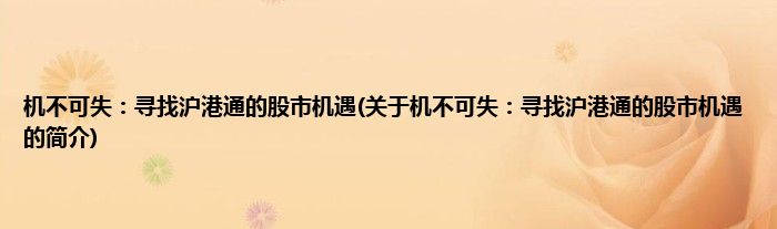 本文关于机不可失:寻找沪港通的股市机遇的简介就讲解完毕,希望对大家有所帮助。
