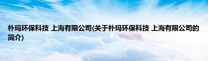 本文关于朴玛环保科技 上海有限公司的简介就讲解完毕,希望对大家有所帮助。