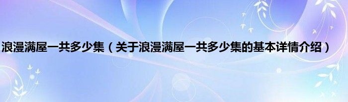 本文关于浪漫满屋一共多少集的基本详情介绍就讲解完毕,希望对大家有所帮助。
