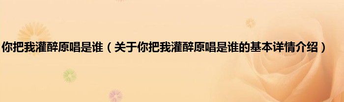 本文关于你把我灌醉原唱是谁的基本详情介绍就讲解完毕,希望对大家有所帮助。