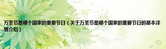 本文关于万圣节是哪个国家的重要节日的基本详情介绍就讲解完毕,希望对大家有所帮助。