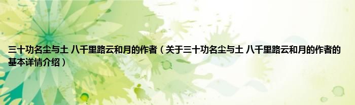 本文关于三十功名尘与土 八千里路云和月的作者的基本详情介绍就讲解完毕,希望对大家有所帮助。