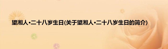 大家好,望湘人·二十八岁生日,关于望湘人·二十八岁生日的简介很多人还不知道,现在让我们一起来看看吧!