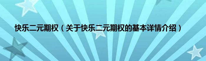 本文关于快乐二元期权的基本详情介绍就讲解完毕,希望对大家有所帮助。