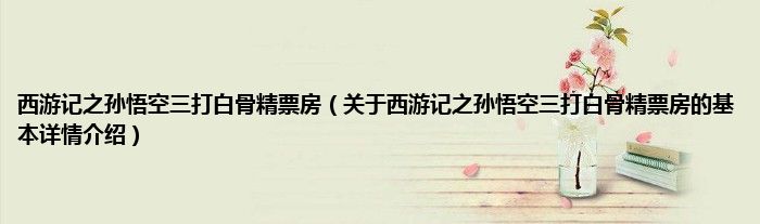 本文关于西游记之孙悟空三打白骨精票房的基本详情介绍就讲解完毕,希望对大家有所帮助。