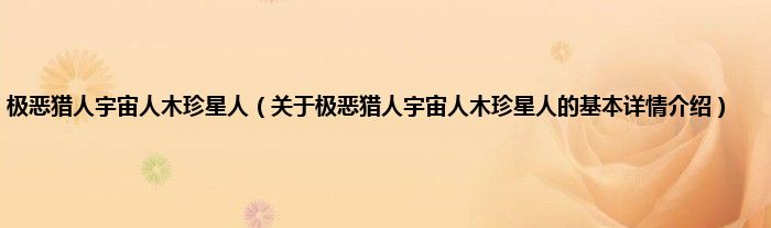 本文关于极恶猎人宇宙人木珍星人的基本详情介绍就讲解完毕,希望对大家有所帮助。