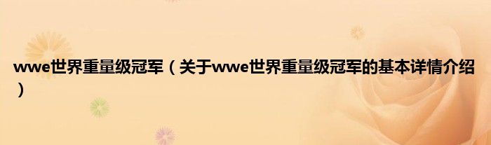 本文关于wwe世界重量级冠军的基本详情介绍就讲解完毕,希望对大家有所帮助。