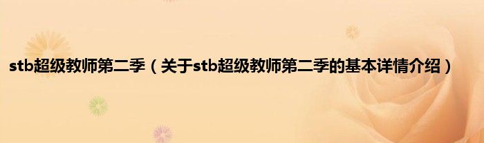 本文关于stb超级教师第二季的基本详情介绍就讲解完毕,希望对大家有所帮助。