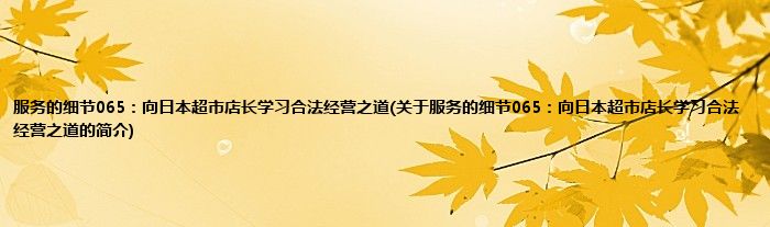 本文关于服务的细节065:向日本超市店长学习合法经营之道的简介就讲解完毕,希望对大家有所帮助。