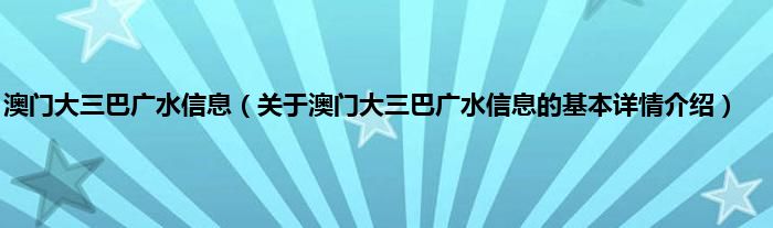 本文关于澳门大三巴广水信息的基本详情介绍就讲解完毕,希望对大家有所帮助。