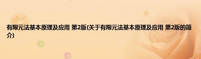本文关于有限元法基本原理及应用 第2版的简介就讲解完毕,希望对大家有所帮助。