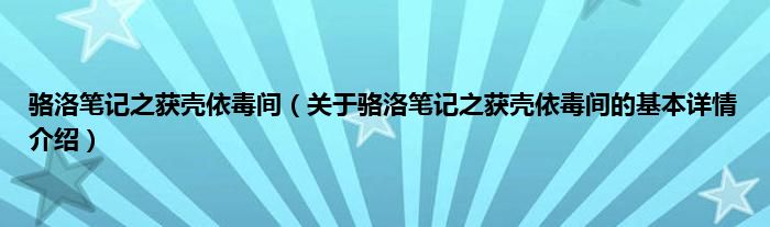 大家好我是小蝌蚪,骆洛笔记之获壳依毒间,关于骆洛笔记之获壳依毒间的基本详情介绍很多人还不知道,那么现在让我们一起来看看吧!