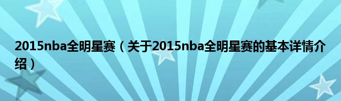 本文关于2015nba全明星赛的基本详情介绍就讲解完毕,希望对大家有所帮助。