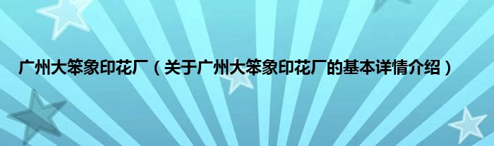 本文关于广州大笨象印花厂的基本详情介绍就讲解完毕,希望对大家有所帮助。