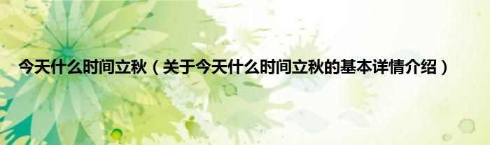 本文关于今天什么时间立秋的基本详情介绍就讲解完毕,希望对大家有所帮助。