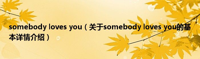 本文关于somebody loves you的基本详情介绍就讲解完毕,希望对大家有所帮助。