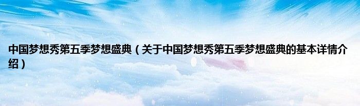 本文关于中国梦想秀第五季梦想盛典的基本详情介绍就讲解完毕,希望对大家有所帮助。
