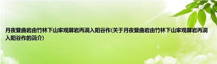 大家好,月夜登曲岩由竹林下山家观屏岩丙洞入阳谷作,关于月夜登曲岩由竹林下山家观屏岩丙洞入阳谷作的简介很多人还不知道,现在让我们一起来看看吧!