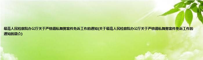 最高人民检察院办公厅关于严格循私舞弊案件免诉工作的通知(关于最高人民检察院办公厅关于严格循私舞弊案件免诉工作的通知的简介)