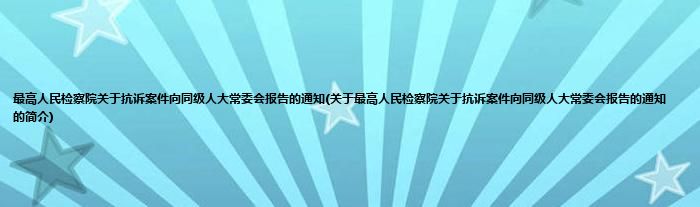 大家好,最高人民检察院关于抗诉案件向同级人大常委会报告的通知,关于最高人民检察院关于抗诉案件向同级人大常委会报告的通知的简介很多人还不知道,现在让我们一起来看看吧!