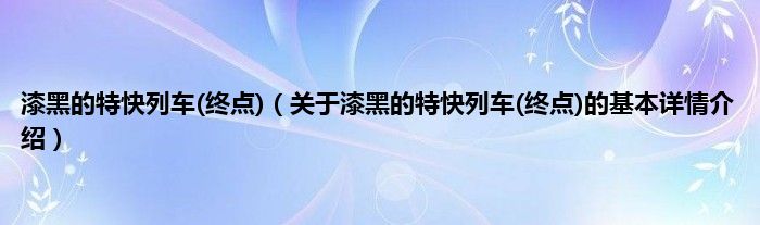 大家好我是小蝌蚪,漆黑的特快列车(终点),关于漆黑的特快列车(终点)的基本详情介绍很多人还不知道,那么现在让我们一起来看看吧!