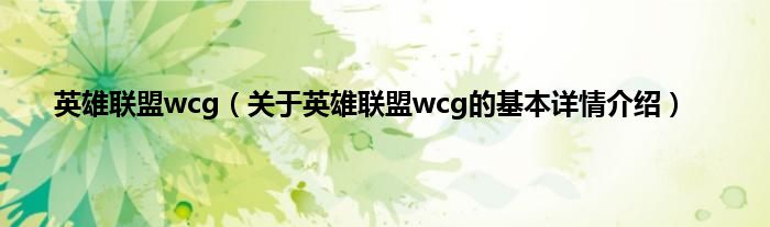 本文关于英雄联盟wcg的基本详情介绍就讲解完毕,希望对大家有所帮助。