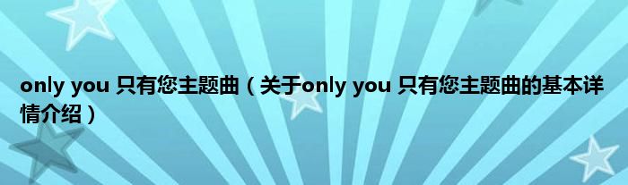 本文关于only you 只有您主题曲的基本详情介绍就讲解完毕,希望对大家有所帮助。