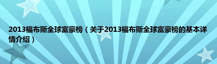 本文关于2013福布斯全球富豪榜的基本详情介绍就讲解完毕,希望对大家有所帮助。