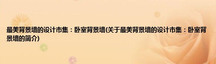 本文关于最美背景墙的设计市集:卧室背景墙的简介就讲解完毕,希望对大家有所帮助。