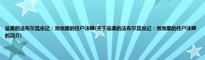 本文关于最美的法布尔昆虫记:泡泡里的住户沫蝉的简介就讲解完毕,希望对大家有所帮助。