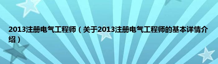 本文关于2013注册电气工程师的基本详情介绍就讲解完毕,希望对大家有所帮助。