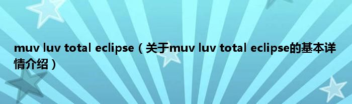 本文关于muv luv total eclipse的基本详情介绍就讲解完毕,希望对大家有所帮助。