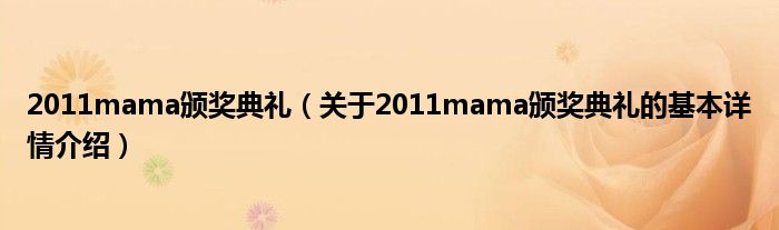 本文关于2011mama颁奖典礼的基本详情介绍就讲解完毕,希望对大家有所帮助。
