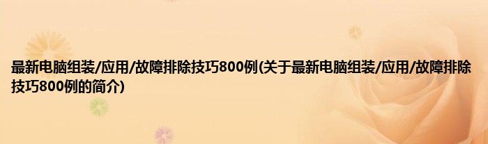 本文关于最新电脑组装/应用/故障排除技巧800例的简介就讲解完毕,希望对大家有所帮助。