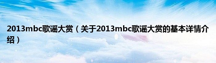 本文关于2013mbc歌谣大赏的基本详情介绍就讲解完毕,希望对大家有所帮助。