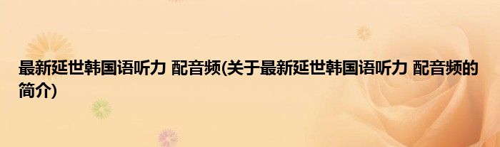 本文关于最新延世韩国语听力 配音频的简介就讲解完毕,希望对大家有所帮助。