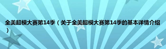 本文关于全美超模大赛第14季的基本详情介绍就讲解完毕,希望对大家有所帮助。