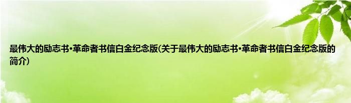 本文关于最伟大的励志书·革命者书信白金纪念版的简介就讲解完毕,希望对大家有所帮助。