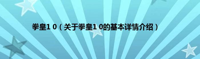 本文关于拳皇1 0的基本详情介绍就讲解完毕,希望对大家有所帮助。