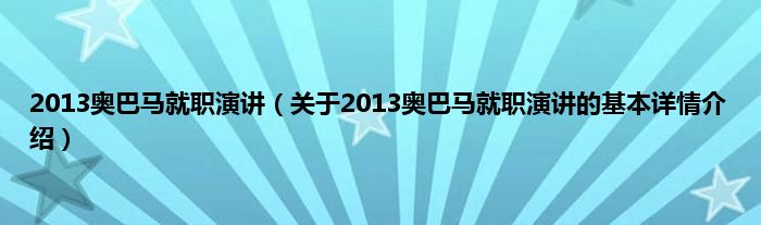 本文关于2013奥巴马就职演讲的基本详情介绍就讲解完毕,希望对大家有所帮助。