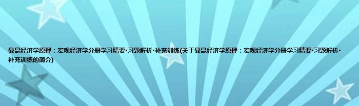 大家好,曼昆经济学原理:宏观经济学分册学习精要·习题解析·补充训练,关于曼昆经济学原理:宏观经济学分册学习精要·习题解析·补充训练的简介很多人还不知道,现在让我们一起来看看吧!