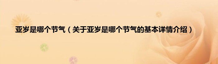 大家好我是小蝌蚪,亚岁是哪个节气,关于亚岁是哪个节气的基本详情介绍很多人还不知道,那么现在让我们一起来看看吧!