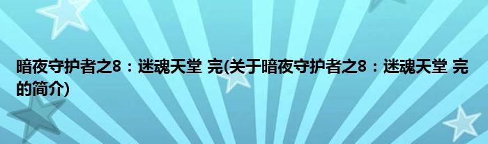 本文关于暗夜守护者之8:迷魂天堂 完的简介就讲解完毕,希望对大家有所帮助。