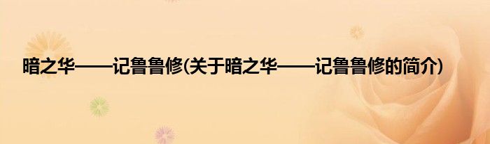 大家好,暗之华——记鲁鲁修,关于暗之华——记鲁鲁修的简介很多人还不知道,现在让我们一起来看看吧!