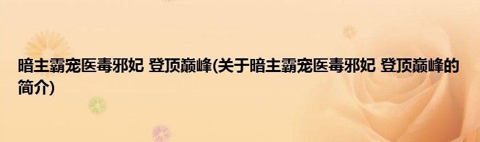 暗主霸宠医毒邪妃 登顶巅峰(关于暗主霸宠医毒邪妃 登顶巅峰的简介)