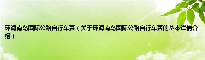 本文关于环海南岛国际公路自行车赛的基本详情介绍就讲解完毕,希望对大家有所帮助。