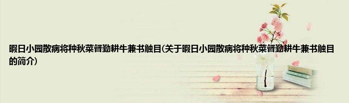 本文关于暇日小园散病将种秋菜督勤耕牛兼书触目的简介就讲解完毕,希望对大家有所帮助。
