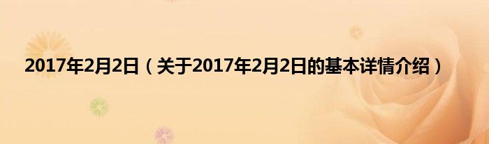 本文关于2017年2月2日的基本详情介绍就讲解完毕,希望对大家有所帮助。